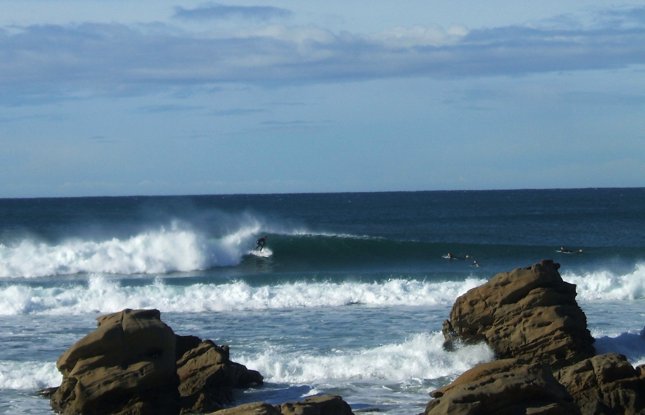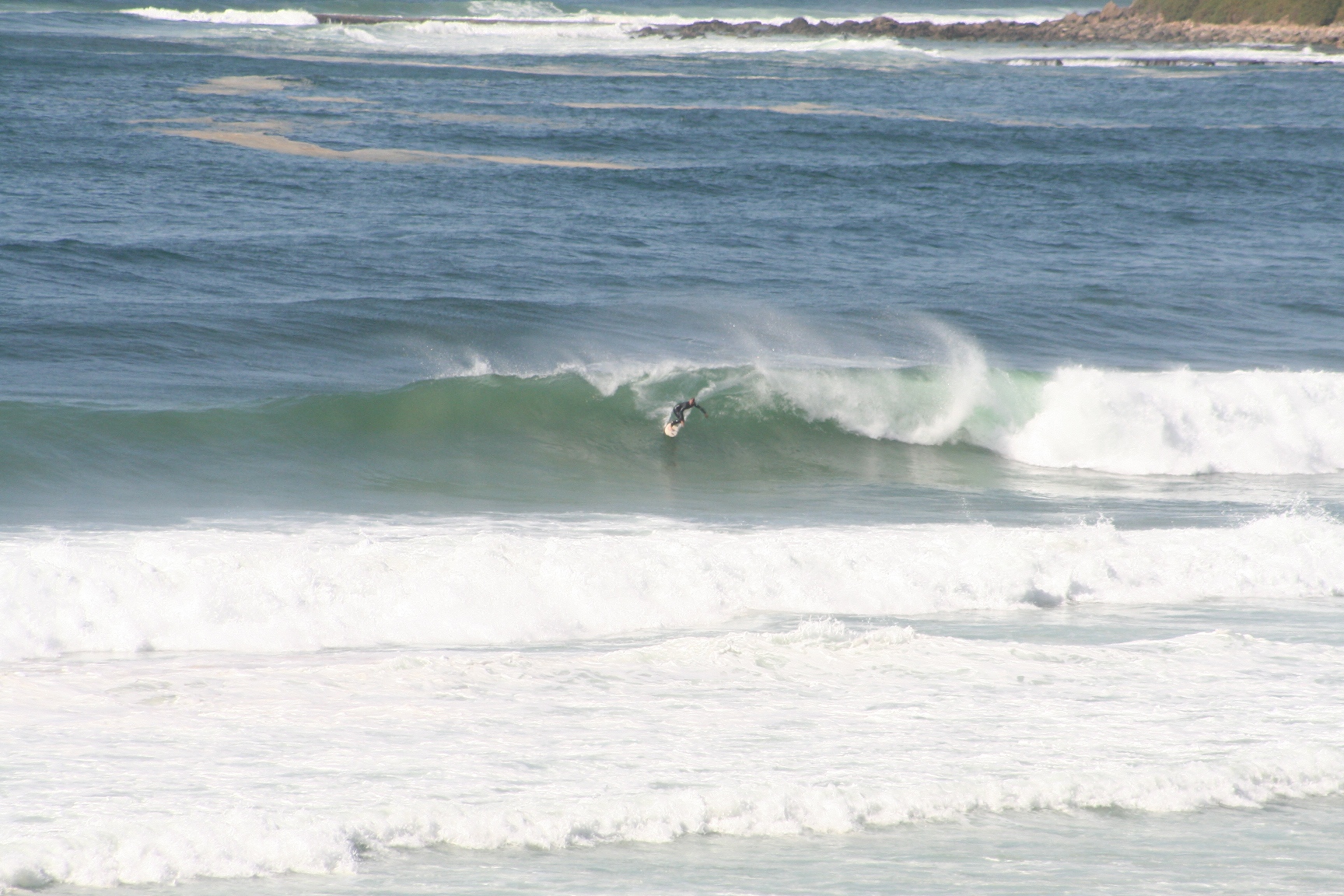 A solid swell pumped through on the last Sunday of May 2010 and the wind held them up. Unknown surfer behind the Redhead Shark Tower.