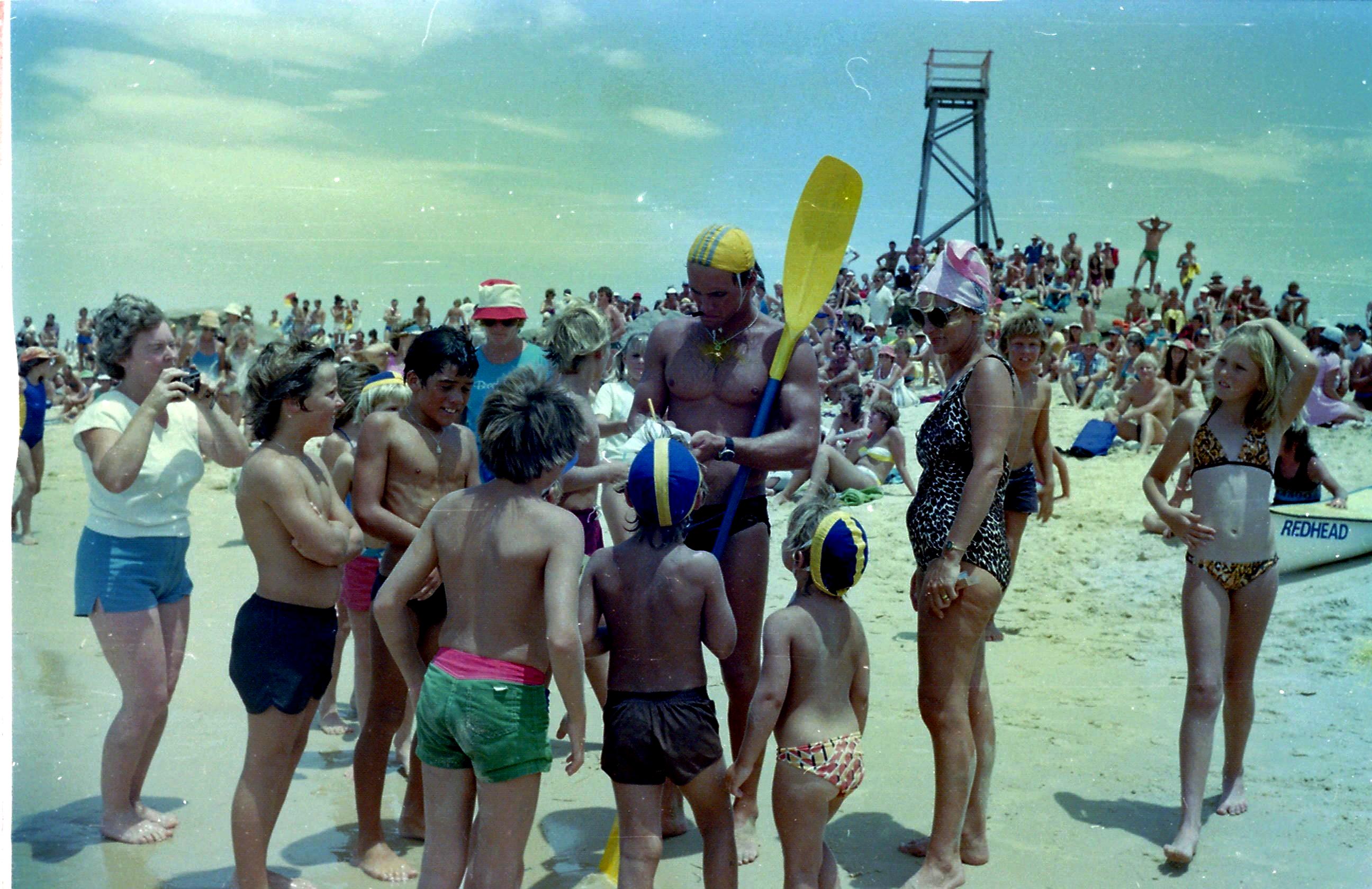 Grant proved a popular draw card and was surrounded by fans and he graciously did some autographs on the way up the beach. Grant kenny with fans at Redhead beach 1978