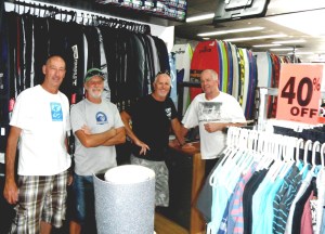 A chance for some old mates Crow, Jim, Al and Roy to catch up at Roy’s Pacific Dreams Surf Shop 8/12/2012.