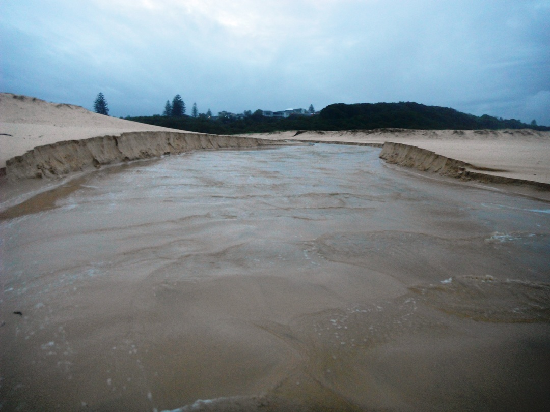 Redhead 2nd Creek 29/2/2013 after heavy rain, this creek seldom flows now. The last time was  in 2007 when the ship the Pascha Bulker got shipwrecked on Nobbys Beach.