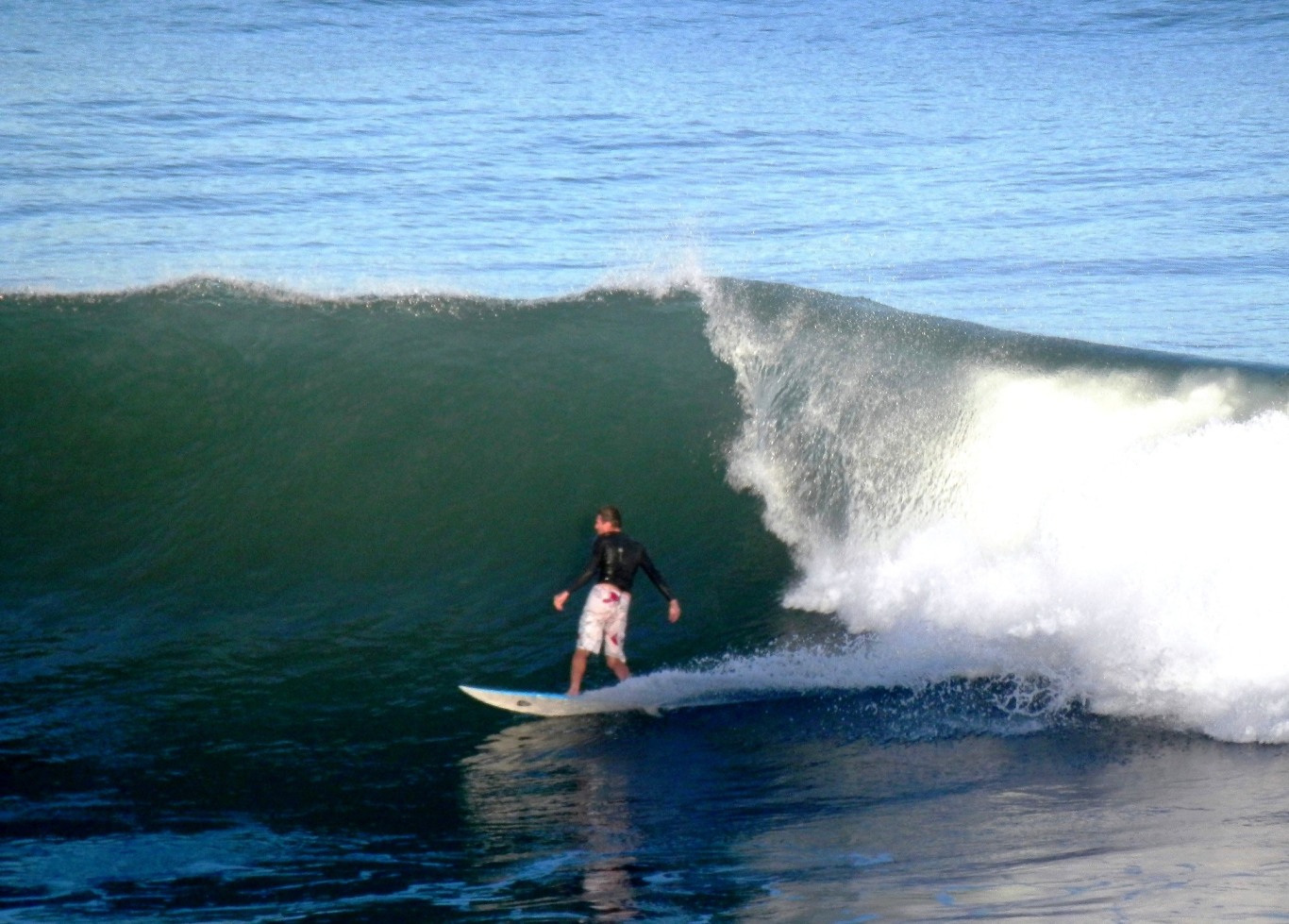 Redhead Beach Sea Wall 20/04/13. If your planning a leisurley walk along the beach, don’t go at high tide on a big swell for a while. Bonnie makes a dash between sets.