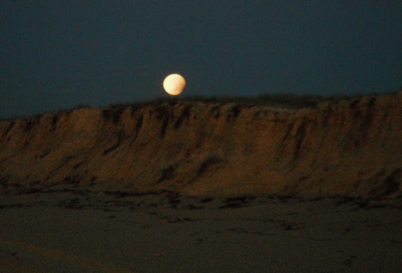 Full Moon at sunrise over Redhead beach sand cliff 26/4/2013