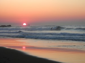 Redhead Beach 23/8/2013. A surfer catches a few waves before the sun comes up.
