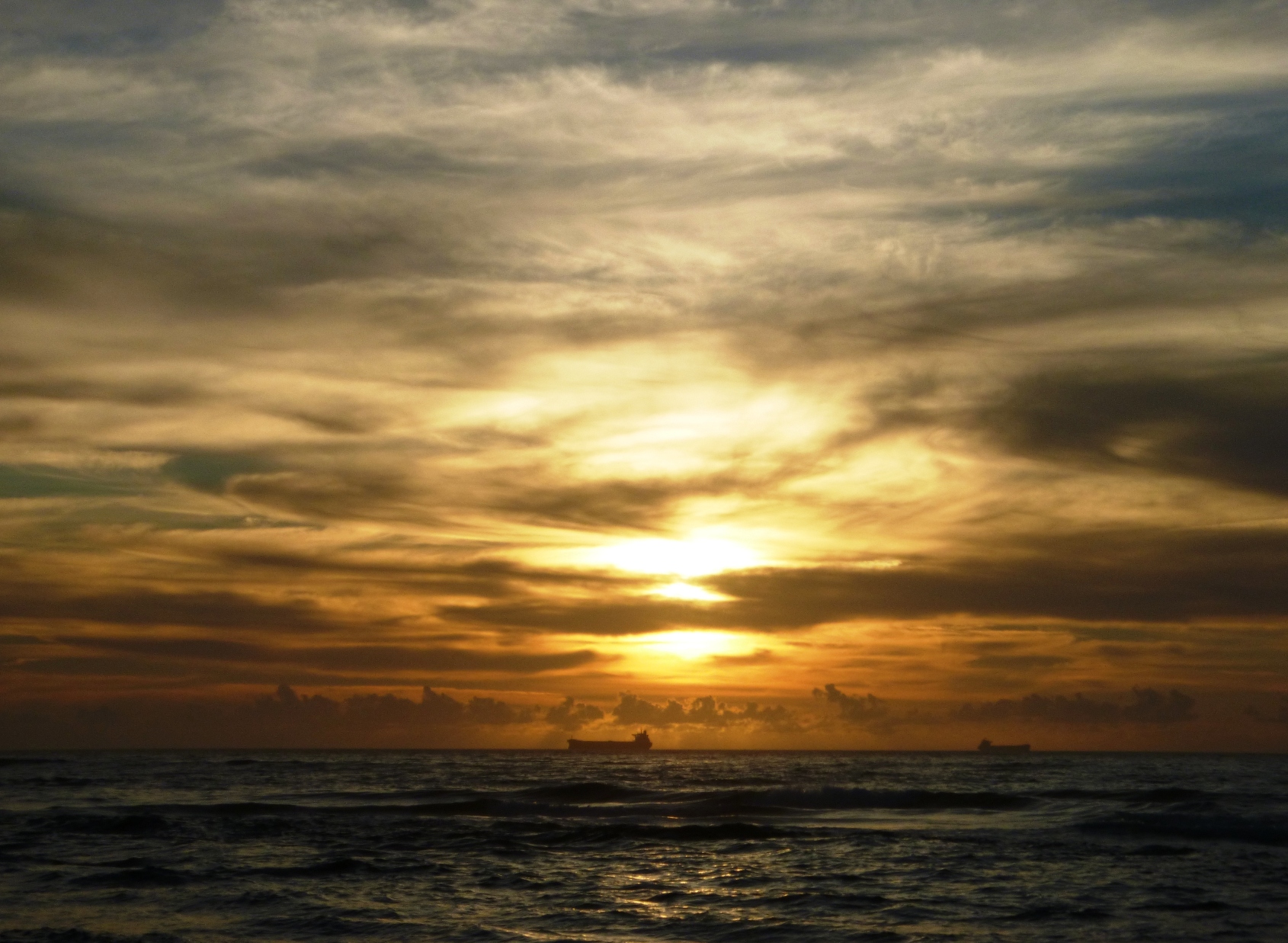 A nice coloured cloudy sky at sunrise with waiting ships 13/03/2016
