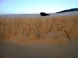 Natures sand sculpture and a bush fire Redhead beach 23/8/2019