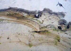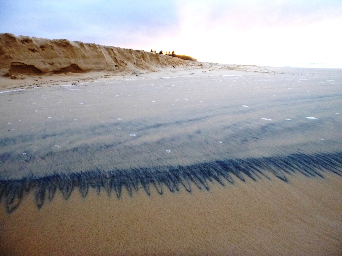 Rutile patterns in the sand Redhead Beach July 2020. Note not enough there to bring the sand mining dredge back!.