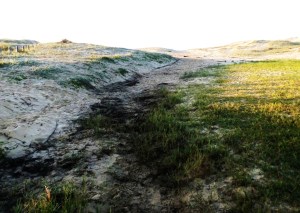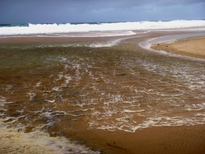 More big surf 6/5/2020 a wave had pushed up the path of Redhead Second Creek all the way to the boardwalk, about 200 metres inland leaving a trail of seaweed and flotsam.
