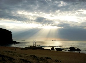 Redhead Beach early morning with the sun beaming through the clouds 23/11/2020