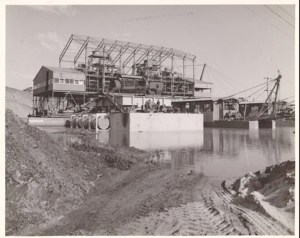 Rutile Mining along Redhead Beach late 1950’s to early 1960’s The floating dredge moved along the beach to Blacksmiths and back again, then the area was “re-planted” Unknown photographer..